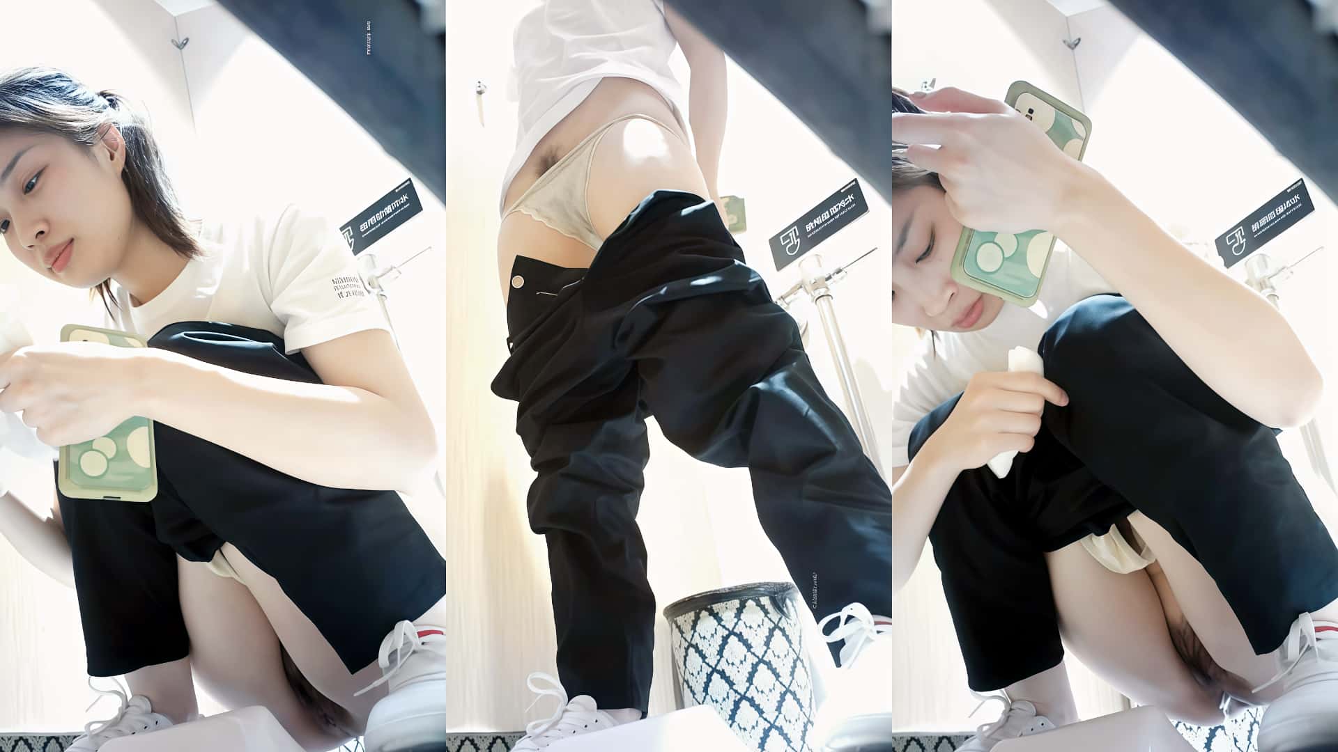 ❤️魔手☛外购❤️【外语学院女厕】高清偷拍:3位颜值好身材学妹入厕▶身穿吊带装学妹得脱光光才能尿尿好麻烦▶奶兜子还是没肩带真时尚 |